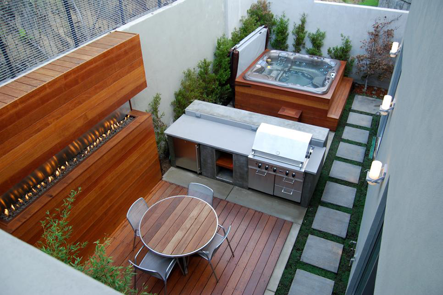 แม้พื้นที่จะไม่ใหญ่มากนัก แต่ก็สามารถปรับให้เป็นมุมปาร์ตี้บาร์บิคิว พร้อมอ่างสำหรับแช่ตัวได้