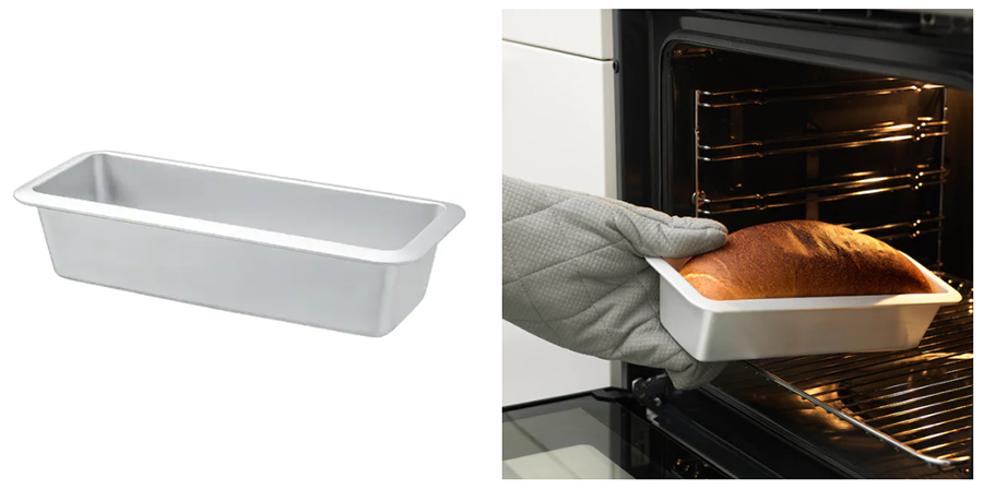 พิมพ์ขนมปังแถวทำจากอะลูมิเนียมชุบแข็ง ถาดอบจึงมีพื้นผิวที่แข็งแรง และทนทาน เพื่อให้ตัวถาดสามารถใช้ได้นานแนะนำให้ใช้น้ำมันหรือเนยหล่อลื่นเป็นประจำ และไม่นำไปใช้กับอาหารที่มีฤทธิ์เป็นกรดสูง เพื่อผลลัพธ์ที่ดีที่สุด