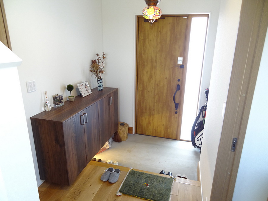 อีกวัฒนธรรมของเอกลักษณ์ญี่ปุ่นคือการต้อนรับแขกที่มาเยือนหน้าบ้าน จะมีพื้นที่สำหรับถอดรองเท้าที่เรียกว่า Genkan ที่จะทำเป็นและมักจะมีรองเท้าสลิปเปอร์วางรอไว้สำหรับใส่ในบ้าน ซึ่งบริเวณนั้นก็จะมีตู้เก็บรองเท้าวางอยู่ข้างๆ ด้วย