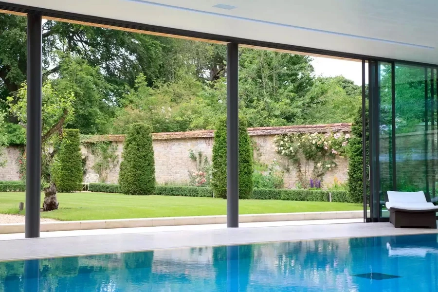 ไอเดียนี้เหมือนสร้างโรงสระว่ายน้ำขึ้นมาเป็นอีกที่นึงของบ้าน แต่ก็ทำเป็นห้องแบบส่วนตัวและอยู่ในร่ม อาจจะเป็นโซนหลังบ้านที่รายล้อมไปด้วยสวน ก็จะได้ฟีลผ่อนคลายไปอีกแบบค่ะ