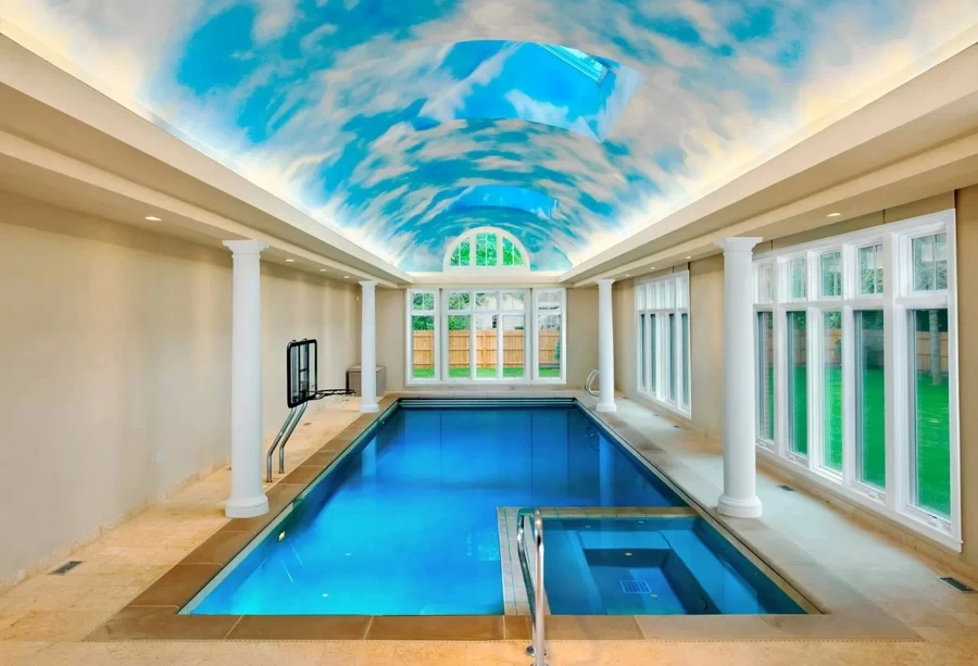 ถ้ามีห้องรับแขกกว้างๆ ก็สามารถทำสระว่ายน้ำใหญ่ๆ ในห้องรับแขกกันไปเลย นอกจากจะเอาไว้ว่ายน้ำเองภายในบ้านแบบส่วนตัวภายในครอบครัวแล้ว ยังปาร์ตี้ริมสระว่ายน้ำกับเพื่อนๆ ได้อีกด้วย