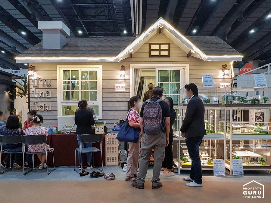 บูธใหญ่โต มีแบบบ้านตัวอย่างมากมาย ส่วนใหญ่จะเป็นบ้านใหญ่ ราคาเริ่มที่ 6 ล้านบาท
