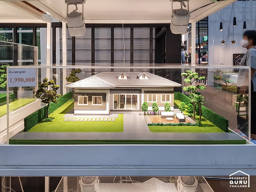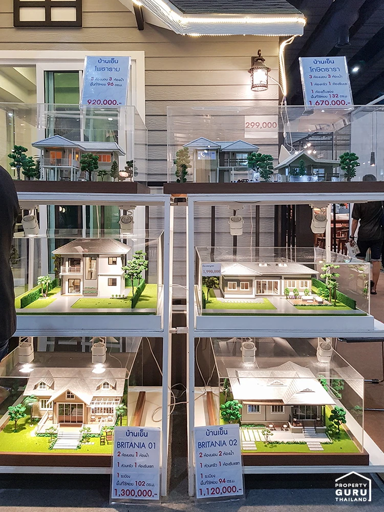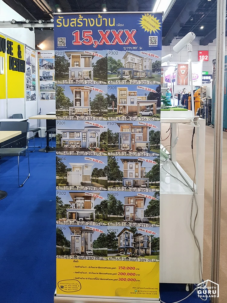 นอกจากนี้ รอบๆ บูธก็มีโมเดลตัวอย่างบ้านหลังใหญ่ ที่รับสร้าง ในหลายๆ ฟังก์ชั่น พร้อมบอกราคาเสร็จสรรพเลยค่ะ