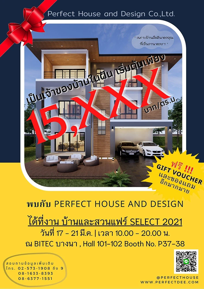 บริษัทรับสร้าง และออกแบบบ้านตามสไตล์เรา ยกบูธมาจัดโปรโมชั่นภายในงานบ้านและสวนแฟร์ Select 2021 ในราคาเริ่มต้นเพียง 15,xxx บาท/ตร.ม. เป็นราคาพิเศษเฉพาะในงานนี้เท่านั้นนะคะ นอกจากนี้ยังฟรี! เข็มเจาะ ของแถมอื่นๆ และส่วนลดอีกมากมาย ที่มีเฉพาะภายในงานบ้านและสวนแฟร์ Select 2021 นี้เท่านั้น ต้องไปกันแล้วล่ะค่ะ