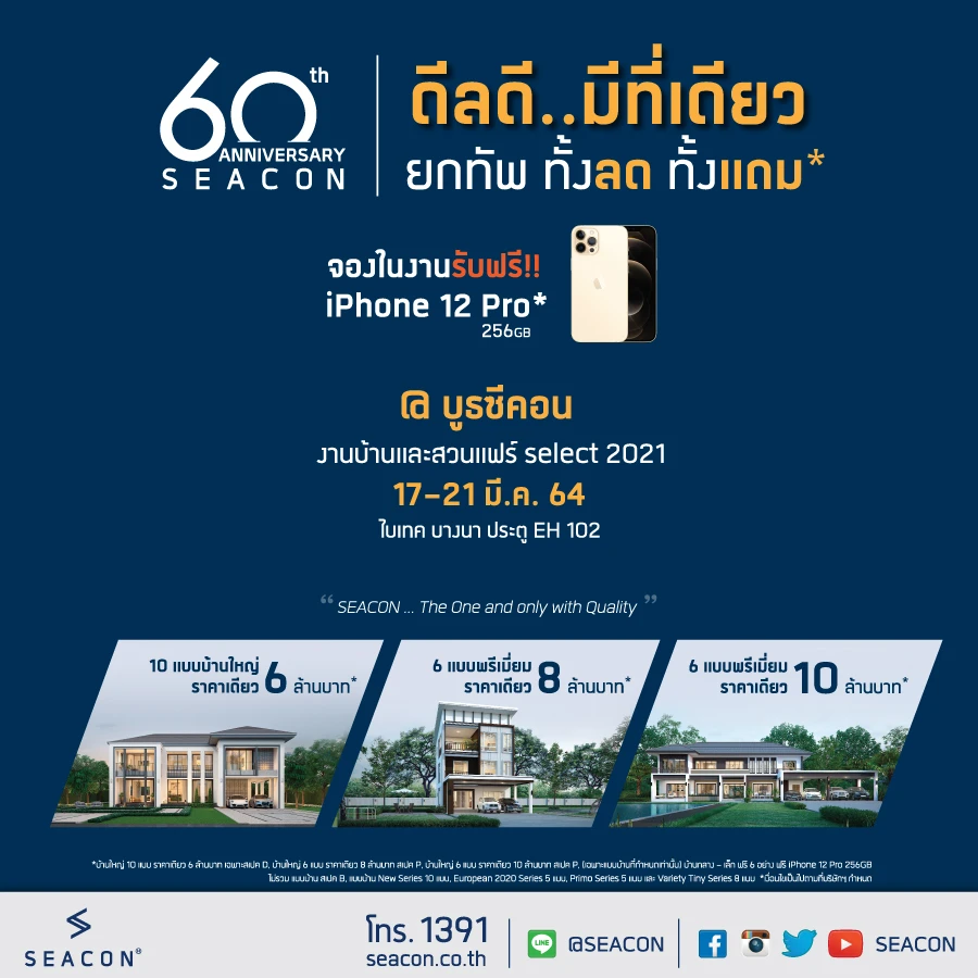 บริษัทรับสร้างบ้านที่มากประสบการณ์ มาพร้อมโปรโมชั่นแบบจัดเต็มเช่นกันค่ะ ยกทัพ ทั้งลด ทั้งแถม แถมยังมีโปรโมชั่นจองในงาน รับฟรี iPhone 12 Pro 256 GB อีกด้วยค่ะ