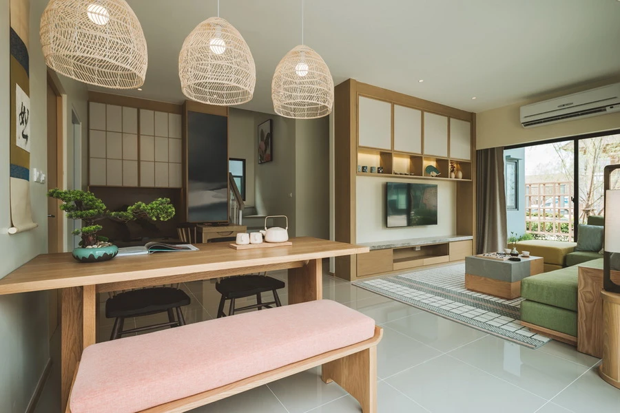 เพิ่มองค์ประกอบความเป็นญี่ปุ่นด้วยการจัดวางให้ดูโปร่งโล่ง คุมสีให้เป็นสีเอิร์ธโทน