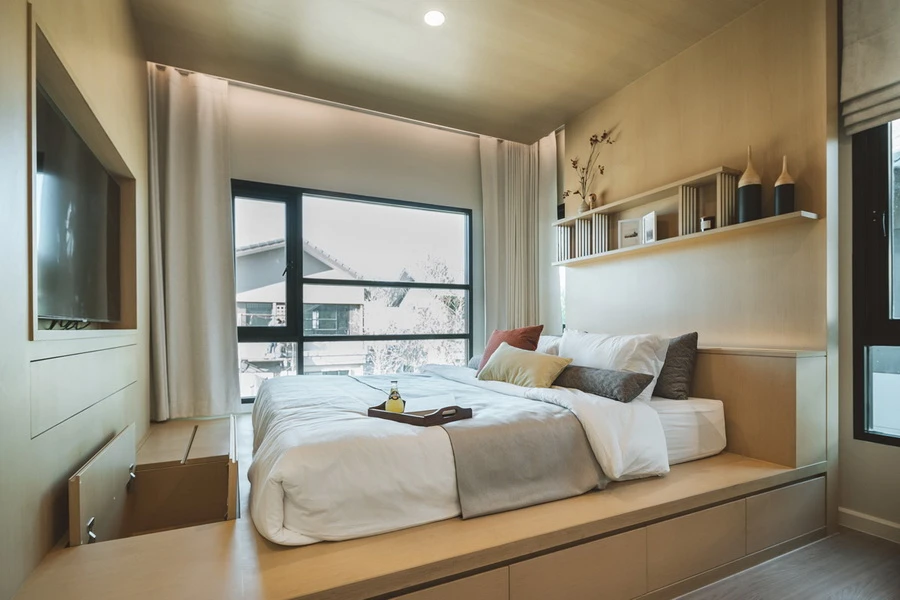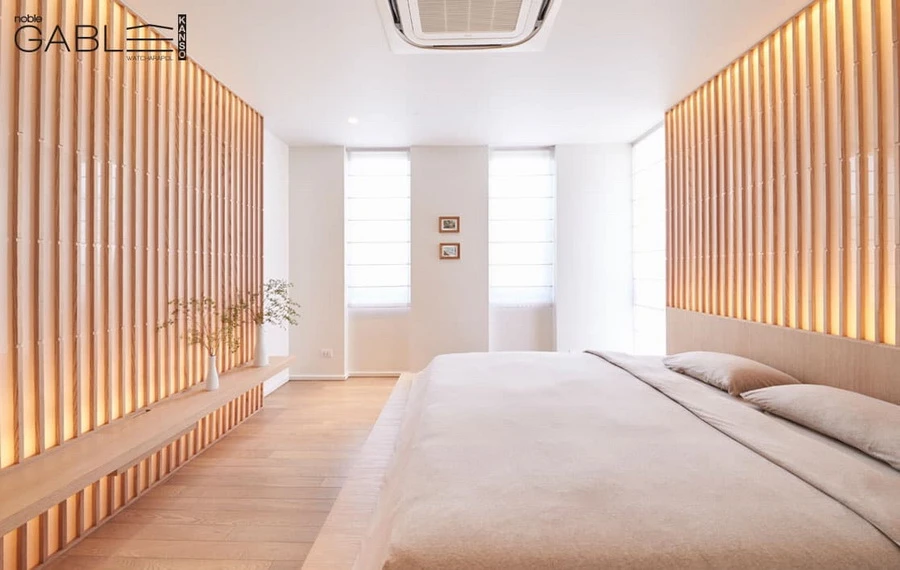 เตียงนอนแบบ Built-in ก็จะดูดีไซน์ออกเป็นญี่ปุ่นหน่อยๆ
