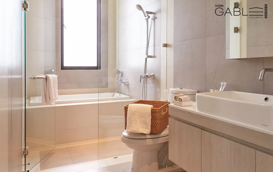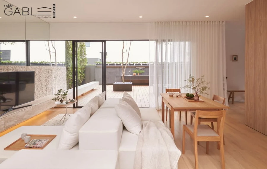 โนเบิล เกเบิล วัชรพล สำหรับโครงการนี้จะเป็นทั้งบ้านแฝด และบ้านเดี่ยวเลยค่ะ ซึ่งตอนนี้ก็เปิดขายเกือบจะหมดโครงการแล้ว เหลือบ้านเดี่ยวหลังใหญ่โซนสุดท้ายอยู่ไม่กี่หลัง คอนเซ็ปต์ของบ้านก็มีความเป็นญี่ปุ่นเยอะทีเดียวค่ะ ใช้นิยามของคำว่า "คันโซ" ที่หมายถึงความเรียบง่าย มาเป็นแรงบันดาลใจในการออกแบบบ้านที่สะท้อนนิยามการใช้ชีวิตแบบเซน ที่รักษาสมดุลและเป็นหนึ่งเดียวกับธรรมชาติ สงบ ผ่อนคลาย เป็นองค์ประกอบที่ผสานอยู่ในบ้าน โนเบิล เกเบิล วัชรพล นั่นเองค่ะ