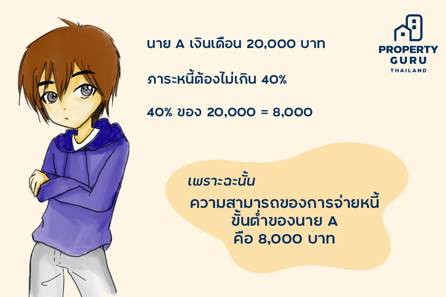 ถ้าหากเรามีหนี้อยู่ก้อนหนึ่ง แต่เราก็ต้องการจะซื้อบ้านด้วย ก็สามารถซื้อได้เช่นกันค่ะ ธนาคารเขาจะดูความสามารถในการผ่อนชำระหนี้ของเราด้วยว่า ถ้ามีหนี้เพิ่มมาอีกก้อนหนึ่งเรามีความสามารถในการจ่ายไหวไหม ปกติแล้วภาระหนี้ต้องไม่เกิน 40% ของเงินเดือน เช่น ถ้าเราเงินเดือน 20,000 บาท ภาระหนี้ต้องไม่เกิน 40% ซึ่งก็คือ 8,000 บาท แต่เรามีหนี้ที่ต้องจ่ายประจำอยู่เดือนละ 2,000 บาท เพราะฉะนั้นเราจะสามารถผ่อนบ้านได้อีกเดือนละ 8,000 - 2,000 = 6,000 บาท นั่นเองค่ะ อย่างไรก็ตาม ธนาคารเขาก็ไม่ได้คิดเป๊ะๆ ขนาดนั้นค่ะ เขาก็ดูเป็นเคสบายเคสไปค่ะ บางคนธนาคารอาจจะมองว่ามีความสามารถในการผ่อนชำระหนี้ได้มากกว่า 40% ก็ได้เช่นกันค่ะ แต่ถ้าเบื้องต้นเพื่อความเซฟด้านการเงิน ถ้าเราเตรียมตัวไว้แต่แรก ก็จะได้ไม่มีปัญหายุ่งยากในภายหลังค่ะ
