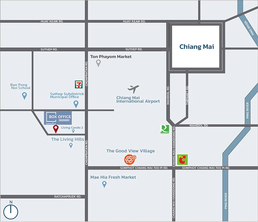 โครงการตั้งอยู่ตำบลหางดง เชียงใหม่ ทำเลทอง แหล่งธุรกิจแห่งใหม่ที่เหมาะแก่การลงทุน ได้ทั้งความสะดวกสบายในการเดินทาง และความเป็นธรรมชาติ ห่างจากสนามบินนานาชาติเชียงใหม่ เพียง 15 นาที ใกล้แหล่งชุมชม ศูนย์การค้า โรงเรียน โรงพยาบาล ครบครันกับสิ่งอำนวยความสะดวก รวมไปถึงแหล่งท่องเที่ยวทางวัฒนธรรมและธรรมชาติที่สวยงาม