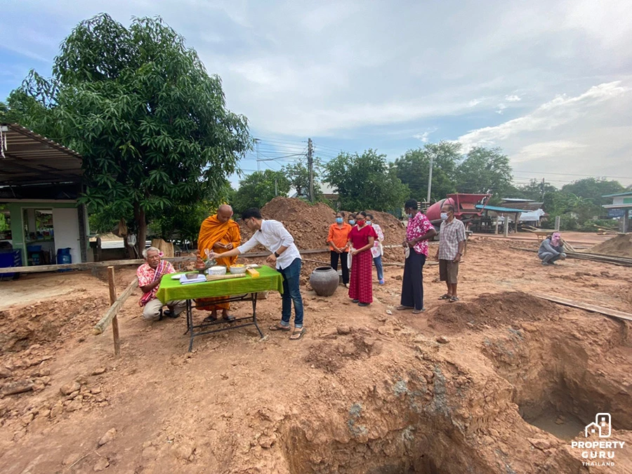 "ตอนนี้ (13/5/64) เทคานเรียบร้อย กำลังจะปูพื้นสำเร็จครับ สำหรับผมสิ่งที่ยากที่สุดคือการหาช่างมาเป็นผู้รับเหมาก่อสร้าง ผมเหมาเฉพาะค่าแรง ส่วนวัสดุอุปกรณ์ผมซื้อเอง โชคดีที่ผมมีลุงเป็นผู้รับเหมา สถาปนิกกับวิศวกรก็เป็นพี่ๆ น้องๆ ที่รู้จักกันดี ทุกอย่างเลยดูไม่มีปัญหาอะไร คุยกันได้ เราปรับแก้ได้ตลอดเพราะผมไม่ได้กู้เงินสร้าง ปัญหาเดียวที่กังวลตอนนี้คือกลัวงบไม่พอ (หัวเราะ) ยุคนี้อะไรก็แพงขึ้นครับ วัสดุบางอย่างปรับสูงขึ้น อย่างเหล็กนี่แพงมากครับ จากบ้าน ก็กลายเป็น บาน และอาจจะเป็น บ้า ในที่สุด ซึ่งตอนนี้ตั้งงบไม่รวมตกแต่งไว้ที่ 1.5 ล้านบาท โดยผมให้แม่เป็นคนคอยดูช่างและคุมงาน ส่วนผมจะเป็นคนโอนเงินซื้อวัสดุให้และไปดูเองบ้างเป็นครั้งคราว"