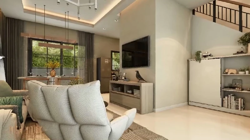 แบบบ้านทาวน์โฮม 2 ชั้น จอดรถได้ 2 คัน กลิ่นอายแบบเมืองนิวยอร์ค