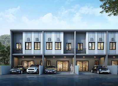 แบบบ้านทาวน์โฮม 2 ชั้น จอดรถได้ 2 คัน กลิ่นอายแบบเมืองนิวยอร์ค