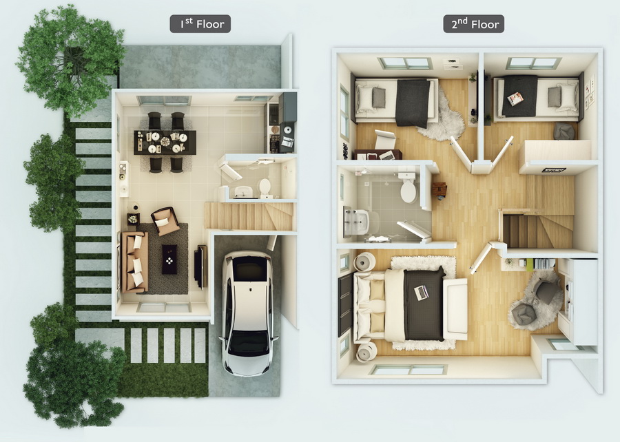 แบบบ้าน CEDAR : 2 ชั้น หน้ากว้าง 5.7 เมตร 3 ห้องนอน 2 ห้องน้ำ 1 ห้องรับแขก 1 ห้องอเนกประสงค์ 1 ห้องรับประทานอาหาร