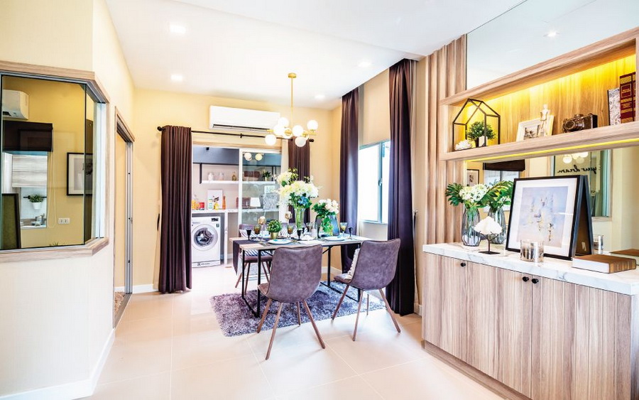 หระหว่างห้องนั่งเล่นกับพื้นที่ทานอาหารยังเหลือพื้นที่อีกพอสมควร ออกแบบเป็นพื้นที่อเนกประสงค์เล็กๆ ได้