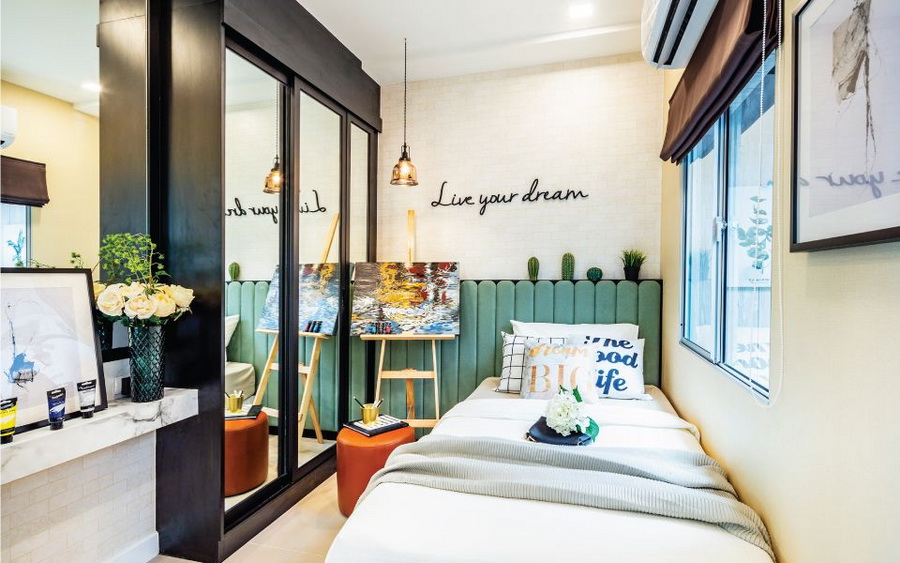 ภายในห้องนอนเล็กเหมาะสำหรับวางเตียงขนาด 3.5 ฟุต