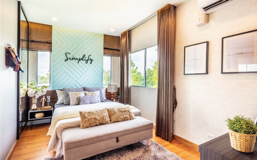 ภายในห้อง Master Bedroom ได้พื้นที่ใช้สอยค่อนข้างใหญ่ ผนังด้านข้างได้หน้าต่างบานใหญ่