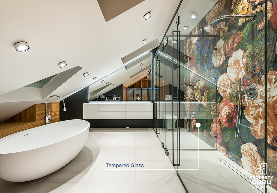 ถ้าพูดถึงในมุมของบ้านจัดสรร ไม่ว่าจะเป็น บ้านเดี่ยว บ้านแฝด ทาวน์โฮม หรือโฮมออฟฟิศ ที่ทางเจ้าของโครงการสร้างมาเพื่อขาย ถ้าเป็นบ้านระดับ Economy Class เริ่มต้น 1-3 ล้านบาท ส่วนใหญ่กระจกที่ใช้สำหรับทำบานประตู หน้าต่าง มักเป็นเกรดมาตรฐานคือ "กระจกลามิเนต" เพราะพื้นที่นอกบ้านต้องรับแสงโดยตรง กระจกลามิเนตสามารถทนความร้อนและรับแรงกระแทกได้ในระดับดี แต่ก็มีบางบริษัทที่เลือกใช้ "กระจกโฟลตใส" ที่มีความหนาในระดับกันแสงและรองรับแรงกระแทกได้ในระดับหนึ่ง ถ้าเป็นบ้านระดับ Main Class ราคาตั้งแต่ 4 ล้านขึ้นไป หลายๆ โครงการเลือกใช้ "กระจกเทมเปอร์" เพื่อความปลอดภัยที่มากขึ้น ทั้งนี้เวลาเราไปดูบ้านโครงการต่างๆ จึงควรสอบถามให้ดีว่า วัสดุต่างๆ ที่เราได้เป็นแบบไหน ปลอดภัยกับเราและคนในบ้านมากน้อยแค่ไหน และที่สำคัญตอนตรวจเช็คบ้านก่อนรับโอนก็สำคัญนะคะ เช็กดูอีกทีว่าได้ตรงตามที่คุยกันไว้หรือไม่ จะได้ไม่ต้องมานั่งเศร้าเอาทีหลังค่ะ