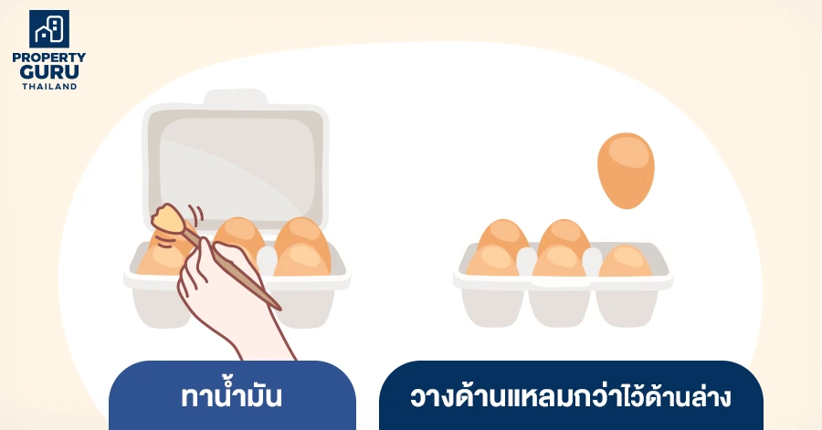 1. นำไข่ไก่ไปทาน้ำมันพืชเพื่อเคลือบไข่ไว้ จะยืดอายุไข่ได้ประมาณ 1 เดือนค่ะ