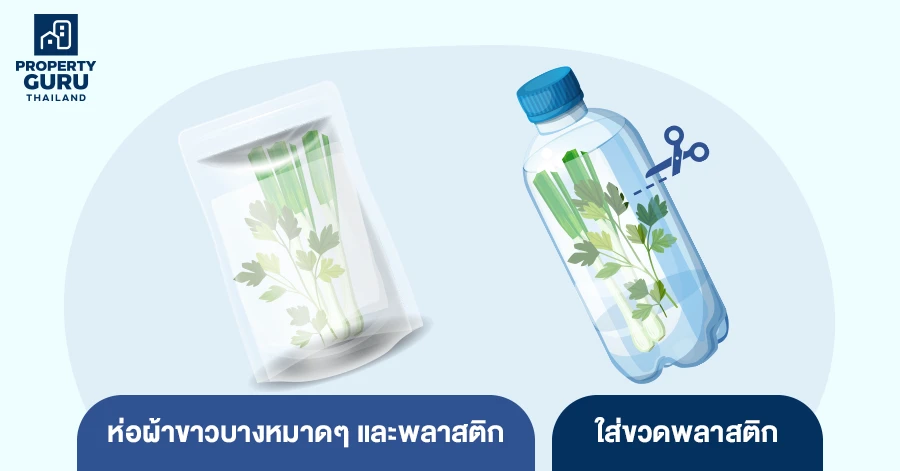 1. วิธีแรกคือการล้างผักให้สะอาด ไม่ต้องตัดรากทิ้ง นำผ้าขาวบางชุบน้ำบิดหมาดมาห่อและใส่ไว้ในถุงซิปล็อก หรือถุงพลาสติกและแช่ไว้ในตู้เย็น