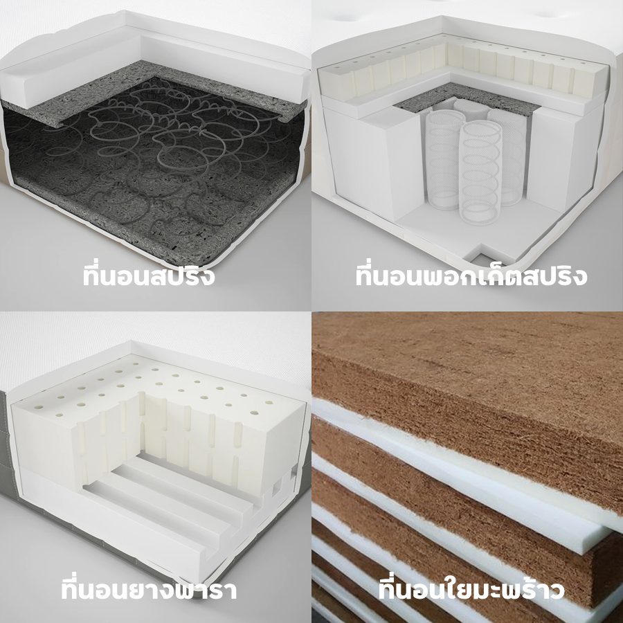ที่นอนมีหลายรูปแบบ เราแบ่งประเภทตามวัสดุของที่นอนมาให้ดูแบบนี้ค่ะ