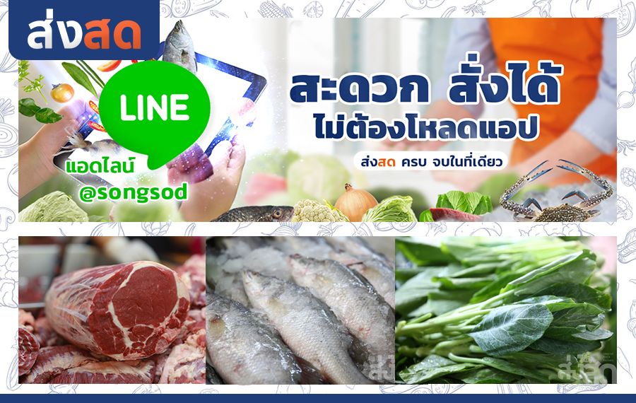 ช่องทางการสั่งซื้อมีทั้งให้สั่งผ่านเว็บไซต์ www.songsod.com หรือสั่งผ่าน Line ได้เลย โดยเข้าที่เมนูไลน์ หรือจดเมนูอาหาร แล้วส่งมาที่ @Songsod จากนั้นรอเจ้าหน้าที่ตอบกลับเพื่อแจ้งราคา และจ่ายเงิน แล้วรอรับวัตถุดิบของสดที่บ้านแบบง่ายดาย