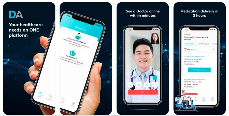 Doctor Anywhere เป็นแอปพลิเคชันที่รับปรึกษาปัญหาสุขภาพกับแพทย์ผู้เชี่ยวชาญด้านสุขภาพจิต นักโภชนาการ สูติ-นรีแพทย์ กุมารแพทย์ และด้านความงาม ผ่านทาง Video Call กับแพทย์ที่ออนไลน์อยู่ในขณะนั้น หรือนัดหมายแพทย์ที่ออฟไลน์อยู่เพื่อจองคิวปรึกษาในภายหลัง มีบริการจัดส่งยาถึงบ้านภายใน 3 ชั่วโมงแบบไม่เสียค่าบริการในการขนส่งสำหรับพื้นที่กรุงเทพมหานคร และระยอง โดยเปิดให้บริการตั้งแต่เวลา 09:00 น. - 20:00 น.