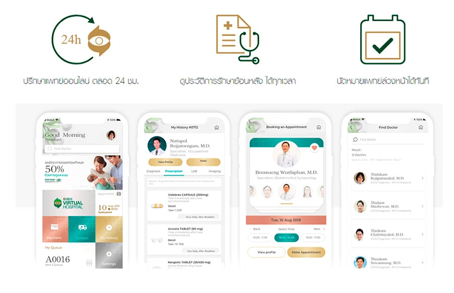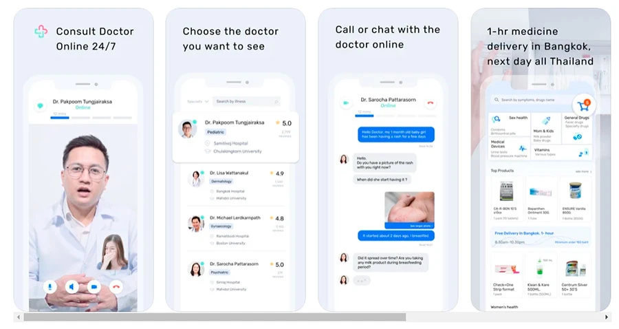 เริ่มกันที่แอปพลิเคชันแรก Raksa เปิดให้บริการในปี 2561 สามารถปรึกษาแพทย์ทางออนไลน์ และสั่งยาออนไลนด์ส่งถึงบ้านได้ด้วย แพทย์ของแอปฯ รักษาเป็นแพทย์จากหลากหลายโรงพยาบาลชั้นนำในกรุงเทพและต่างจังหวัด