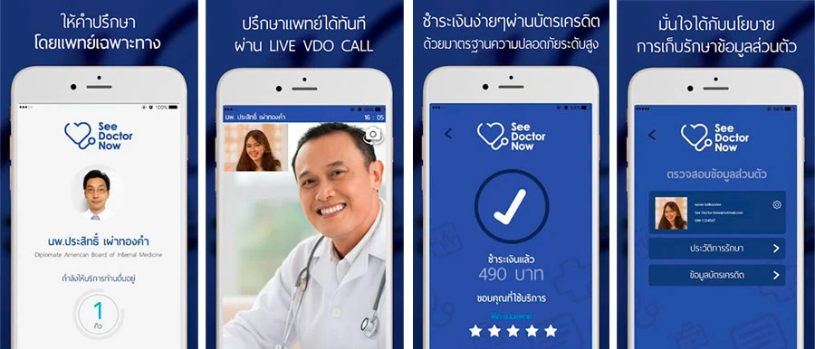 แอป See Doctor Now เปิดให้บริการเมื่อปี 2560 ให้คำปรึกษาดูแลสุขภาพกายทั่วไป และสุขภาพจิต เหมาะสำหรับแม่และเด็ก, วัยรุ่น, วัยทำงาน และผู้สูงอายุ สามารถพูดคุยปรึกษาแพทย์เฉพาะทาง นักจิตวิทยา เภสัชกร พยาบาล และนักโภชนาการแบบเรียลไทม์ผ่าน Live Video Call ได้ตลอด 24 ชั่วโมง โดยสามารถพูดคุยกับพยาบาลเบื้องต้นได้ฟรีทุกที่ทุกเวลา ชำระค่าบริการได้ทั้งรูปแบบบัตรเครดิต บัตรเดบิต หรือหากใครไม่สะดวกจะเป็นการโอนเงินก็ทำได้เช่นกัน