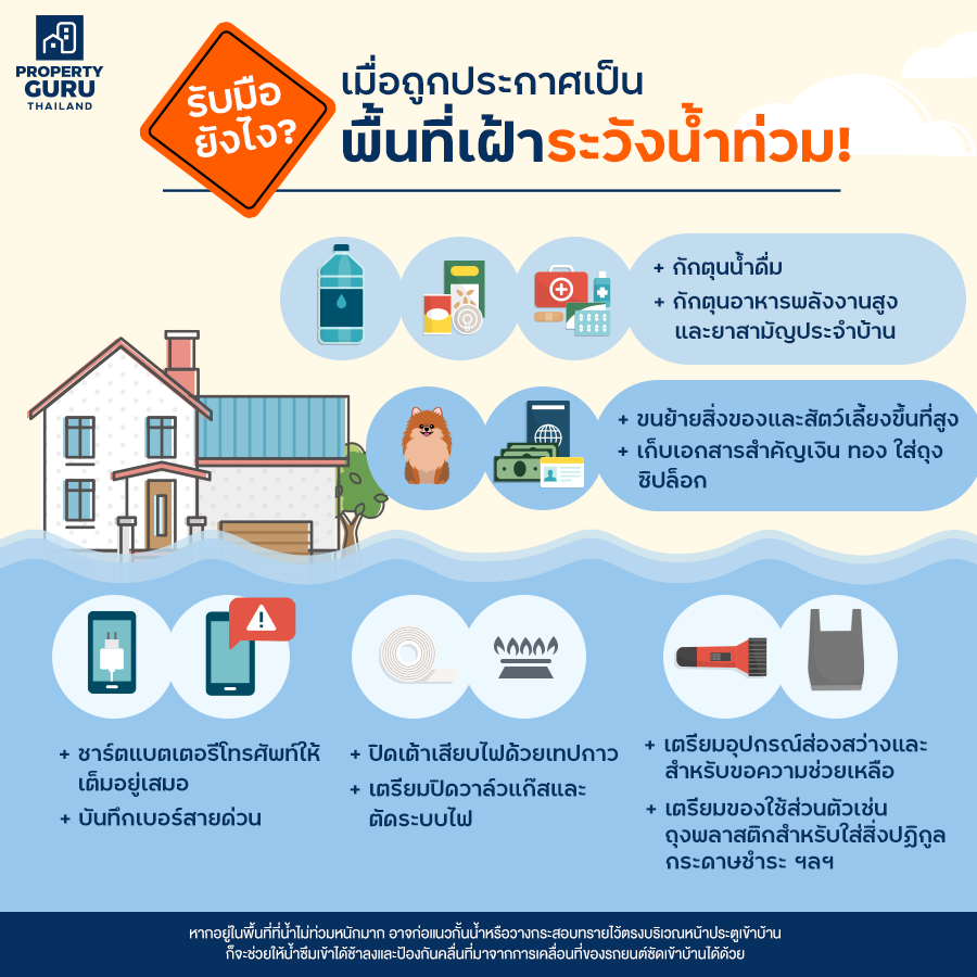 1. ขนย้ายสิ่งของและสัตว์เลี้ยงขึ้นที่สูงที่คาดว่าจะพ้นน้ำ