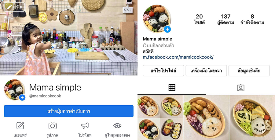 Facebook https://www.facebook.com/mamicookcook และ Instagram https://www.instagram.com/mami.cookcook/ ได้เลยค่ะ