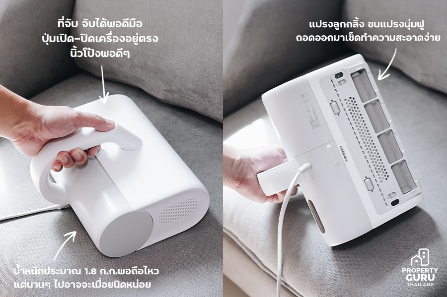 ส่วนเรื่องที่ว่า ดูดไรฝุ่นได้หมดจดแบบที่โฆษณาไว้มั้ย อันนี้ตอบยากแฮะ เพราะเราไม่มีอุปกรณ์ตรวจเช็กไรฝุ่นขนาดเล็กว่า มีหลงเหลืออยู่มากน้อยแค่ไหน แต่ถ้าวัดจากความรู้สึกในการใช้งานมาประมาณ 2 สัปดาห์ ดูดไรฝุ่นบนที่นอน 1 ครั้ง/สัปดาห์ คุณพ่อบ้านซึ่งเป็นภูมิแพ้จามน้อยลงทีเดียว พอเอาฝุ่นผงเล็กๆ ในช่องเก็บฝุ่นไปเททิ้ง ถอดทำความสะอาดอุปกรณ์ รู้สึกได้ว่าที่นอนเราสะอาดมากขึ้น เทียบกับที่จ่ายในราคาพันกว่าๆ ถือว่า คุ้มค่าแก่การลอง เราติดเรื่องเสียงที่ดังพอสมควร ดังแบบเครื่องดูดฝุ่นทั่วไปเลยค่ะ ถ้าใช้ในหอพักหรือคอนโดอาจจะต้องใช้งานในช่วงกลางวัน เสียงอาจจะรบกวนห้องข้างๆ เอาได้นะคะ แต่ก็ถือว่าไม่ใช่ปัญหาใหญ่ขนาดนั้นเราให้คะแนนความมินิมอลของแบรนด์นี้เต็ม 10 อยู่แล้ว วางไว้เฉยๆ แบบไม่ต้องแอบซ่อน เป็นเฟอร์นิเจอร์ที่หน้าตาดีไปอีก 1 ชิ้น