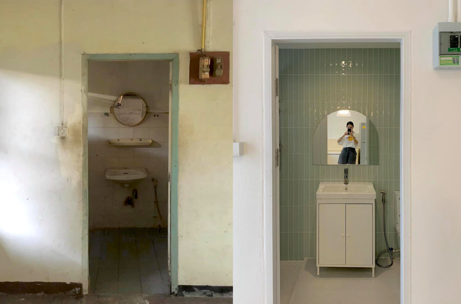 คุณ Surumpa Jareonsin เล่าถึงประสบการณ์รีโนเวทบ้านหลังนี้ที่ใช้เวลาเพียงแค่ 2 เดือน ในการรีโนโวท และทำเองแทบทุกอย่าง ตั้งแต่ออกแบบเอง เดาเอง ลองเอง ถ่ายรูปเอง ต่อเตียงเอง ไปตัดกระจกเอง เจาะผนังเอง ทำความสะอาดเอง ยกกระเบื้องลงเองอีก รวมถึงทะเลาะกันเองด้วย (อันนี้น่าจะเป็นทุกบ้านเลยนะคะ) ฮ่าๆ