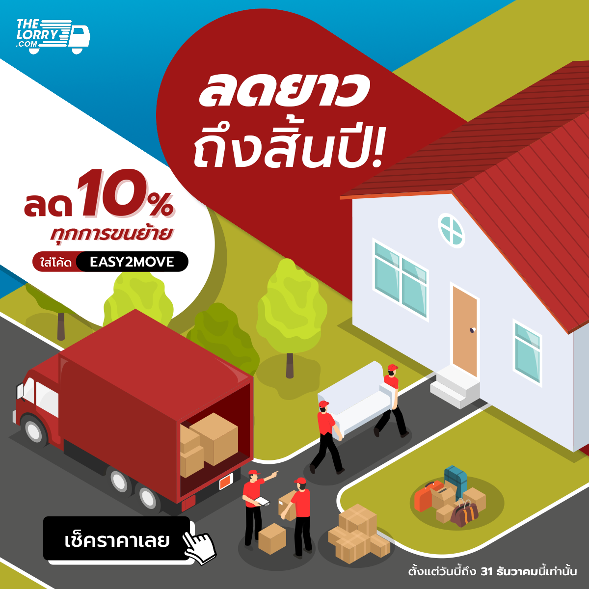 สำหรับช่วงนี้ไปจนถึงสิ้นปี มีโค้ดโปรโมชั่น EASYTOMOVE ลดราคา 10% สำหรับทุกการขนย้าย เมื่อใช้บริการขั้นต่ำ 500 บาทขึ้นไป