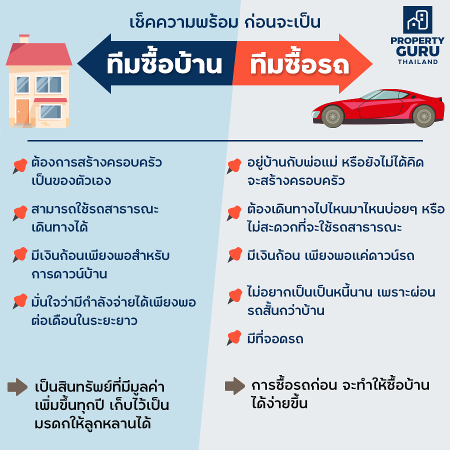 เช็คความพร้อมก่อนจะตัดสินใจ ซื้อบ้าน หรือ ซื้อรถ ?