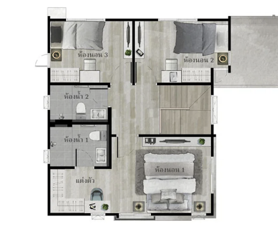 5. Huvvi (แสนสราญ) บ้านแฝด พื้นที่ใช้สอย 147 ตร.ม 3 ห้องนอน ห้องอเนกประสงค์ 3 ห้องน้ำ ห้องรับประทานอาหาร ห้องครัว ที่จอดรถ 2 คัน