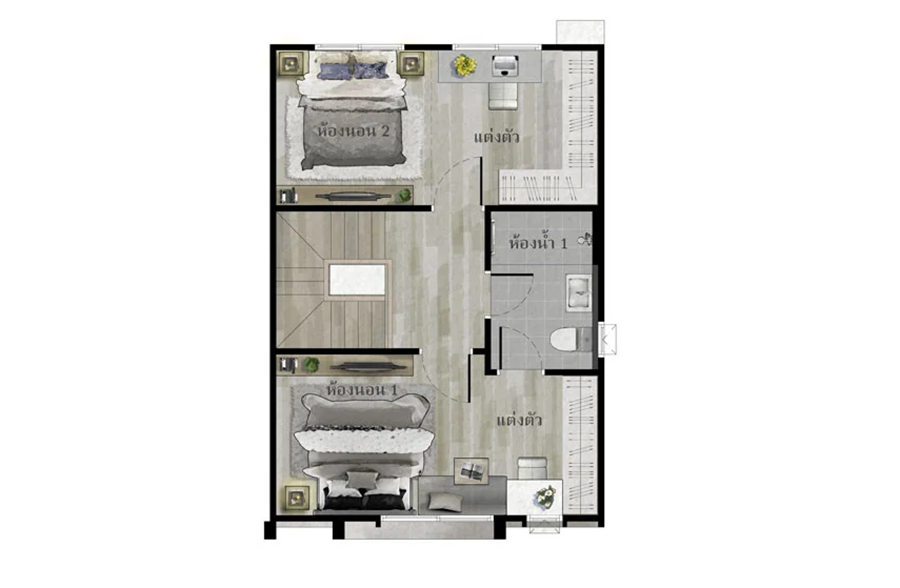 2. Mys+ (แสนสบาย) ทาวน์โฮมแปลงมุม S+ พื้นที่ใช้สอย 109 ตร.ม 2 ห้องนอน 2 ห้องน้ำ 1 ห้องรับแขก ห้องรับประทานอาหาร ที่จอดรถ 2 คัน