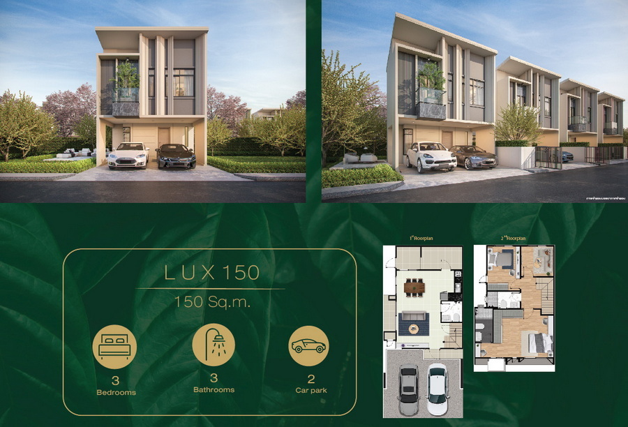 3. LUX 150 : พื้นที่ใช้สอยขนาด 150 ตร.ม. ขนาด 3 ห้องนอน 3 ห้องน้ำ 2 ที่จอดรถ