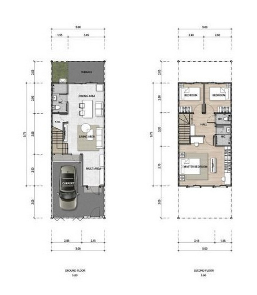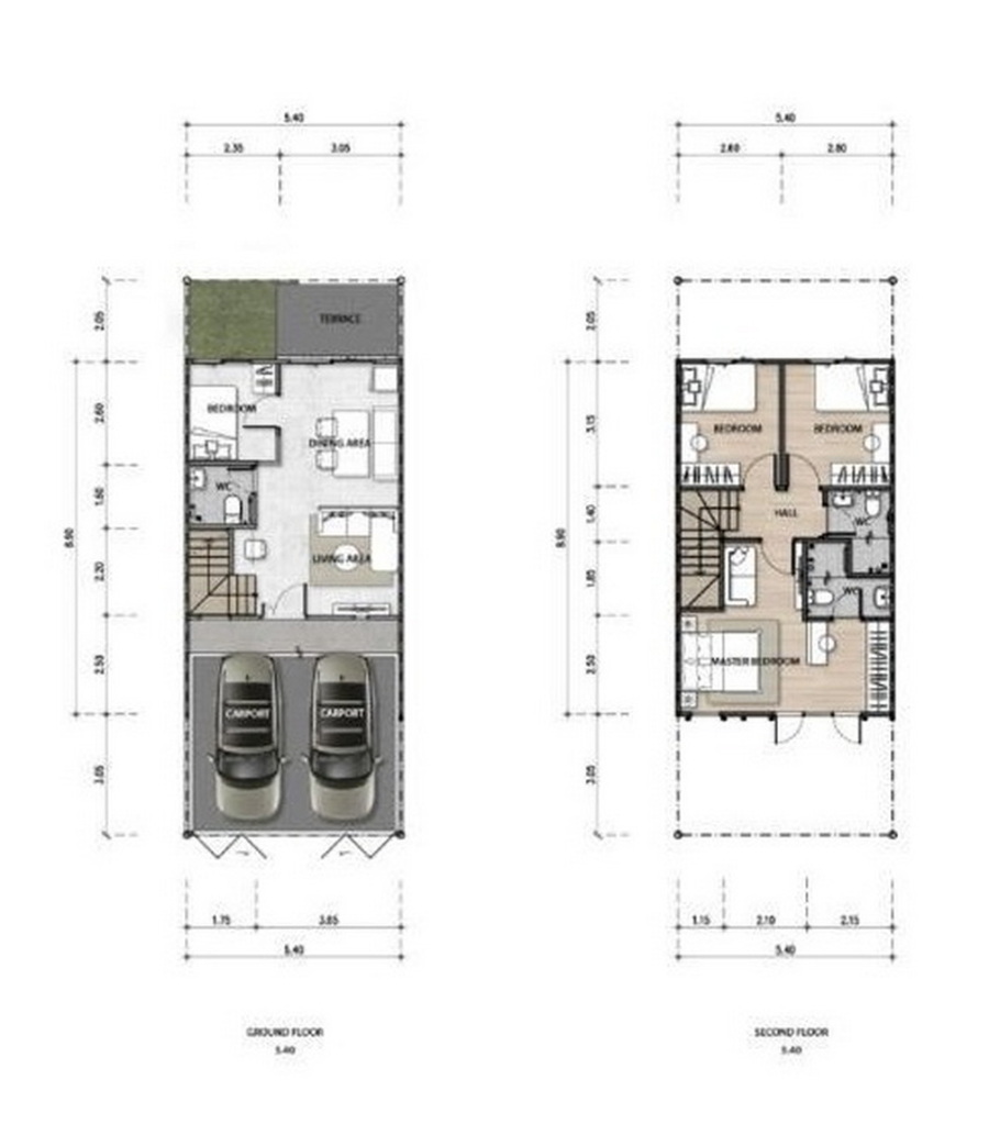 แบบบ้านที่ 2 : ขนาด 30.91 ตารางวา 4 ห้องนอน 3 ห้องน้ำ 2 ที่จอดรถ