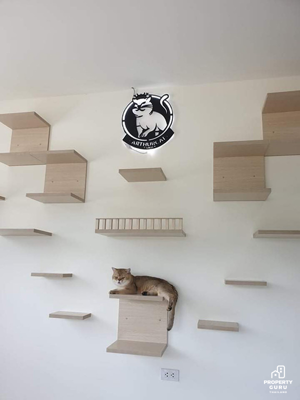 ตกแต่งผนังให้เป็นพื้นที่ปีนป่าย นั่งเล่นของน้องแมว