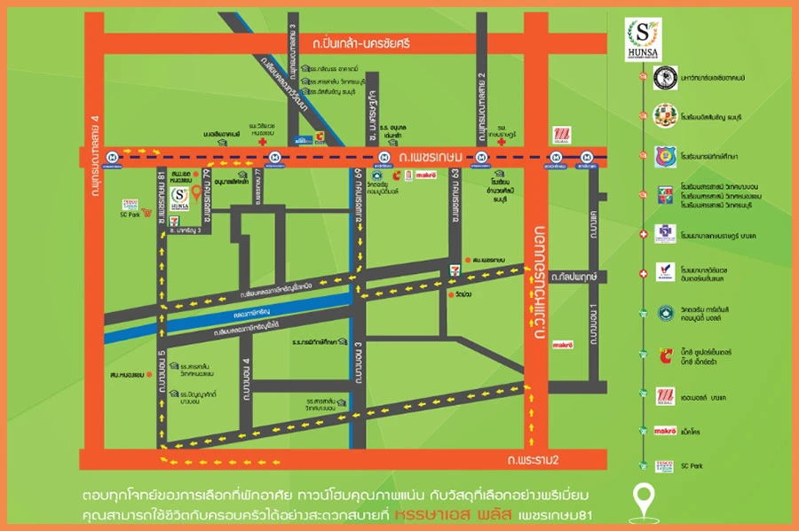 หรรษาเอสพลัส เพชรเกษม 81 (HUNSA S PLUS PETCHKASEM 81) ทาวน์โฮมคุณภาพ ใกล้รถไฟฟ้าสายสีน้ำเงิน ที่ให้ความเป็นส่วนตัวเพียง 65 ยูนิต วางเสาเข็มครอบคลุมตัวบ้านถึงลานซักล้าง รับประกันการทรุดตัว ก่อสร้างด้วยอิฐมอญแดง เดินทางสะดวก ใกล้ MRT สายสีน้ำเงินส่วนต่อขยาย เข้า-ออกได้หลายทางทั้งถนนเพชรเกษม ถนนบางบอน และถนนพุทธสาคร