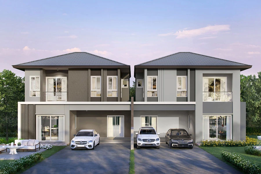 แบบบ้าน : 2-3 ห้องนอน 2-3 ห้องน้ำ 2 ที่จอดรถ พื้นที่ใช้สอย 93-143 ตร.ม.