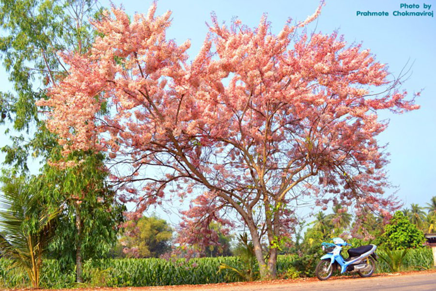 ต้นกัลปพฤกษ์ หรือกาลพฤกษ์ เป็นไม้ยืนต้นสูงประมาณ 5-15 เมตร กิ่งก้านแตกออกเป็นจำนวนมากทำให้เกิดร่มเงา และมีดอกสีชมพูสวยงามบานสะพรั่งในช่วงฤดูร้อน ข้อดีคือมีความสวยงาม แต่ดอกจะร่วงเร็วอาจจะต้องกวาดและทำความสะอาดทุกวันในช่วงที่ดอกบาน