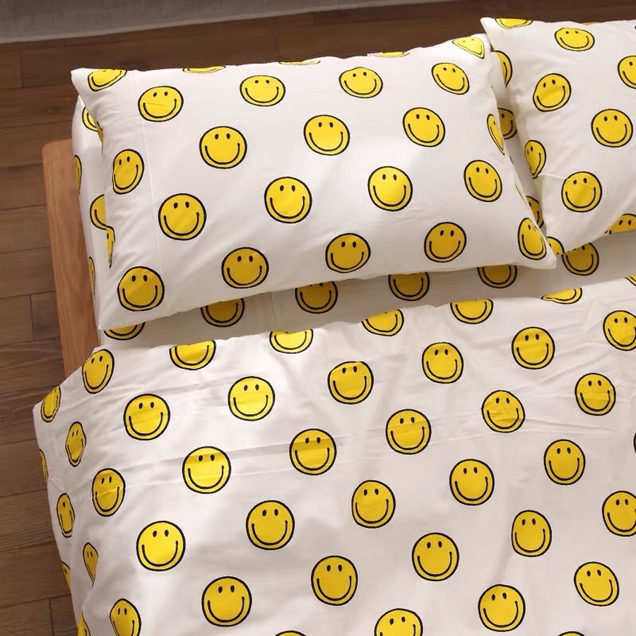 ชุดผ้าปูที่นอนผ้าฝ้ายสีขาวเหลือง รูปหน้ายิ้ม HAPPY EVERY DAY ราคา 1,500 บาท จากร้าน yeh_mthxy2