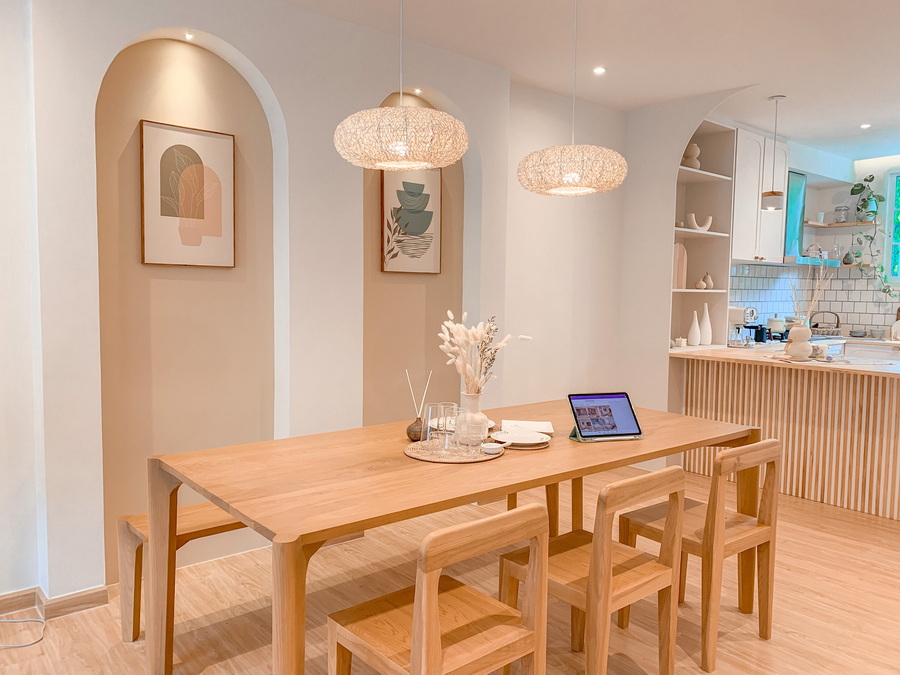 โต๊ะทานอาหารเลือกใช้วัสดุที่เป็นไม้ดูเป็นธรรมชาติเข้ากับโทนสีของบ้าน