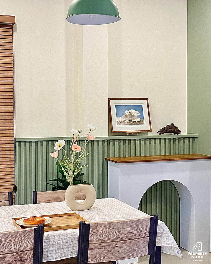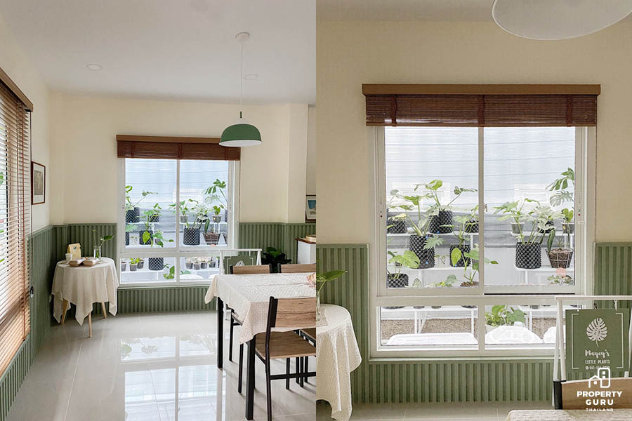 คุณเมย์เริ่มจากหาทีมออกแบบโดยบริษัทที่ถูกใจนั้นมาจากอินสตาแกรม จากนั้นก็ตกลงทำสัญญา โดยแจ้งทีมออกแบบว่าโทนสีหลัก คือสีขาว เขียว เบจ ครีม และน้ำตาล แต่เน้นให้จุดเด่นของบ้านคือสีเขียว.jpg)