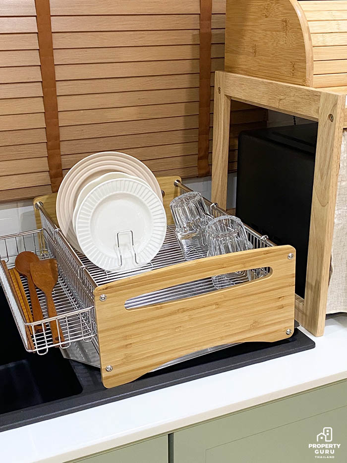 เน้นออกแบบให้มีตู้เก็บจานชามเยอะๆ เพราะจะได้มีพื้นที่เก็บของจุกจิกให้เป็นระเบียบ