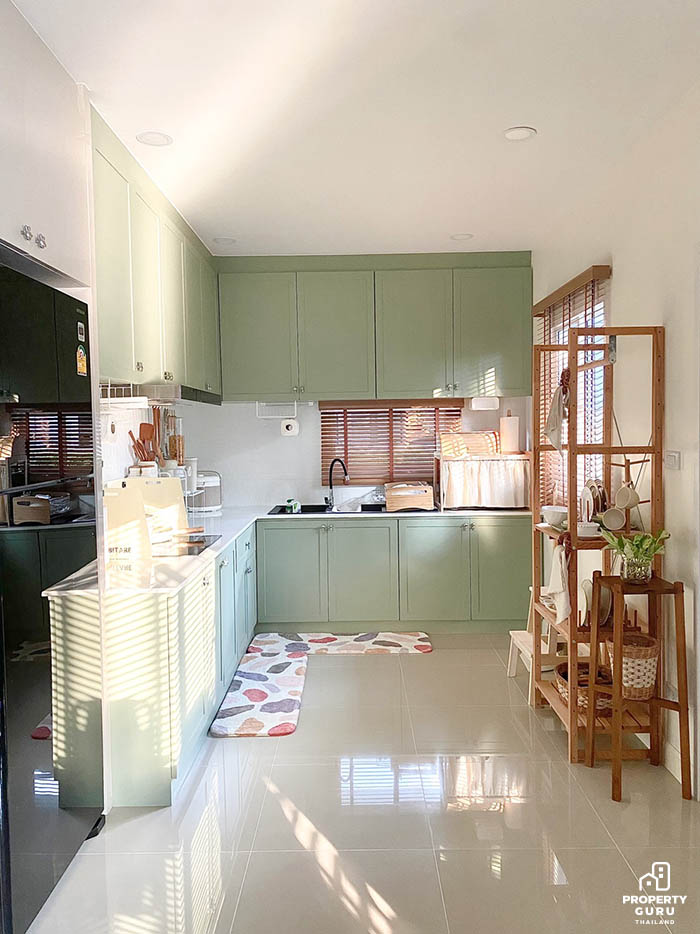สวัสดีค่ะ ใครกำลังหาไอเดียทำครัวอยู่ต้องไม่พลาดบทความนี้เลย ครั้งนี้ขอพาทุกท่านมาชมการบิวท์อินครัวสีเขียว สุดอบอุ่น พร้อมชมของตกแต่งห้องครัวแบบคิวท์ๆ แถมใช้ได้จริง มองไปมุมไหนก็ถูกใจไปทุกมุมเลย ซึ่งเจ้าของครัวนี้ก็คือ คุณเมย์ - ธัญวัลย์ สิริจีรณัฐ อายุ 30 ปี ปัจจุบันประกอบอาชีพเจ้าของร้านวัสดุก่อสร้าง ที่จะมาบอกหมดแบบไม่มีกั๊กว่าครัวนี้เริ่มยังไงและใช้สีอะไรในงบประมาณ 3 แสนบาท (รวมเครื่องใช้ไฟฟ้าบางส่วน) ไปชมรายละเอียดกันเลยค่ะ