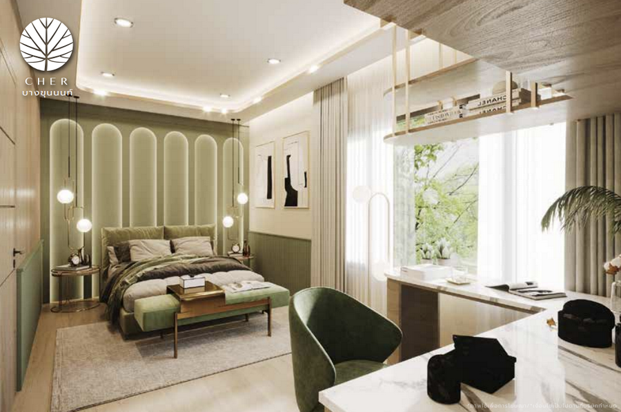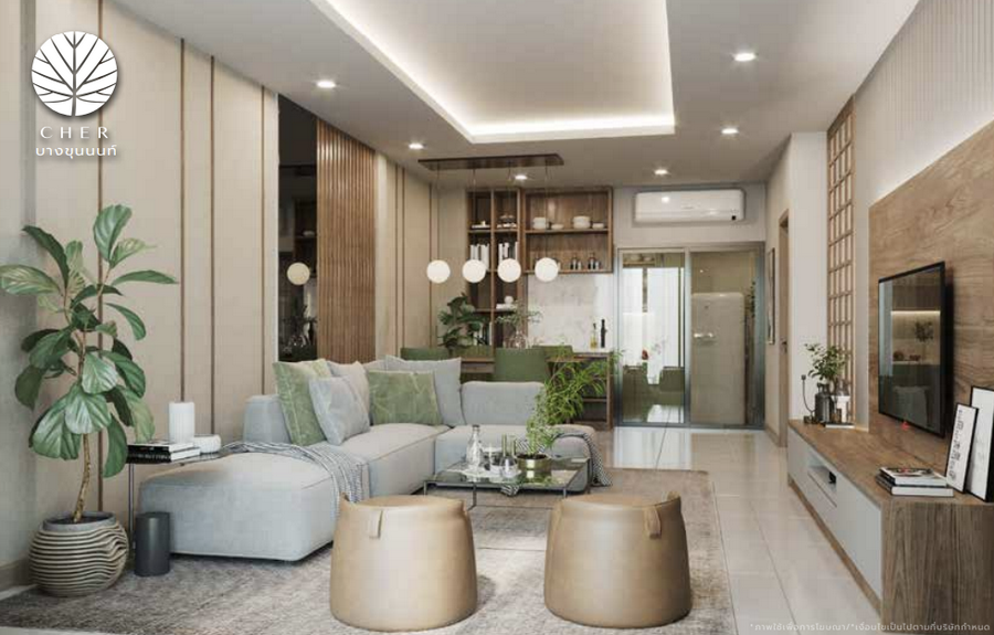 เฌอ บางขุนนนท์ ทาวน์โฮมที่ได้แรงบันดาลใจจากการชีวิตใกล้ชิดธรรมชาติในแถบสแกนดิเนเวีย ส่วนกลางจัดเต็ม บรรยากาศร่มรื่นรายล้อมไปด้วยพื้นที่สีเขียวคุณจะได้ดื่มด่ำกับธรรมชาติได้เต็มที่ บ้านทุกหลังถูกออกแบบอย่างใส่ใจแบบ Universal design พร้อมกระจกเขียวตัดแสงกันความร้อนเข้าสู่ตัวบ้าน ก่อสร้างด้วยอิฐมอญแดงทั้งหลัง