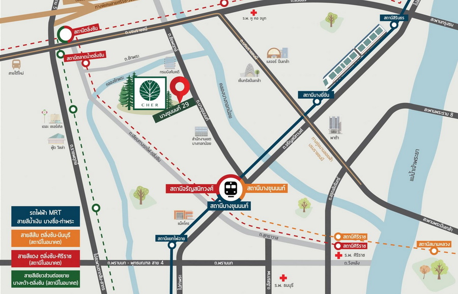 โครงการตั้งอยู่ ซอยบางขุนนนท์ 29 แขวงบางขุนนนท์ เขตบางกอกน้อย กรุงเทพมหานคร เชื่อมต่อการเดินทางด้วยทางด่วน และสถานีรถไฟฟ้า "บางขุนนนท์ Interchange Station" เชื่อมต่อรถไฟฟ้าถึง 3 สาย ย (นํ้าเงิน, ส้ม, แดงอ่อน) ใกล้ห้างสรรพสินค้า เมเจอร์ ปิ่นเกล้า, เซ็นทรัล ปิ่นเกล้า, ตลาดบางขุนนนท์, แม็คโคร จรัญสนิทวงศ์ และโรงพยาบาลศิริราช